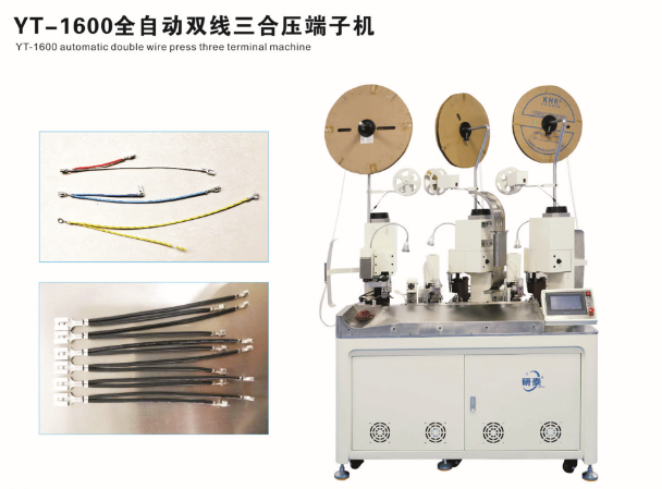 全自動雙頭穿護(hù)套端子機、全自動雙頭穿熱縮管端子機、全自動銅帶壓接端子機、全自動雙頭端子機、全自動排線端子機、全自動沾錫打端機、全自動打端插殼機、新能源全自動雙頭穿熱縮管散粒端子機、新能源全自動雙壓單穿激光打號碼管端子機、新能源大平方穿號碼管端子機。